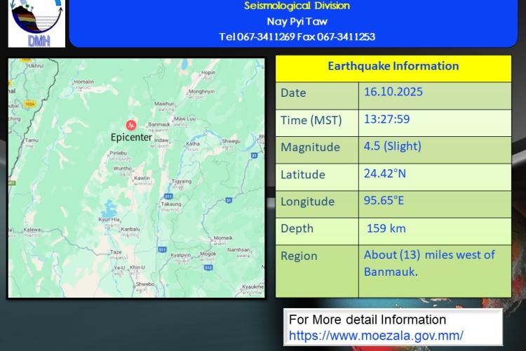 နောက်ဆက်တွဲမြေငလျင်သတင်းမိုးလေဝသနှင့်ဇလဗေဒညွှန်ကြားမှုဦးစီးဌာန