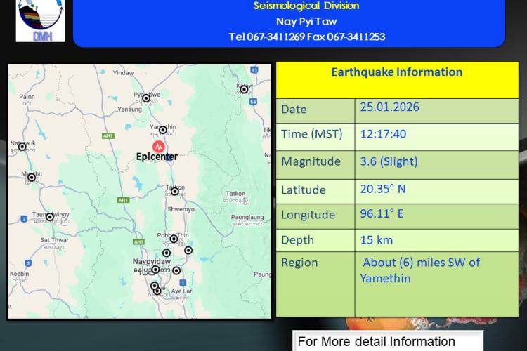 နောက်ဆက်တွဲမြေငလျင်သတင်းမိုးလေဝသနှင့်ဇလဗေဒညွှန်ကြားမှုဦးစီးဌာန