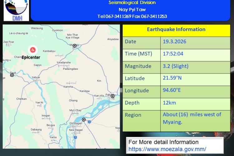 မြေငလျင်သတင်းမိုးလေဝသနှင့်ဇလဗေဒညွှန်ကြားမှုဦးစီးဌာန