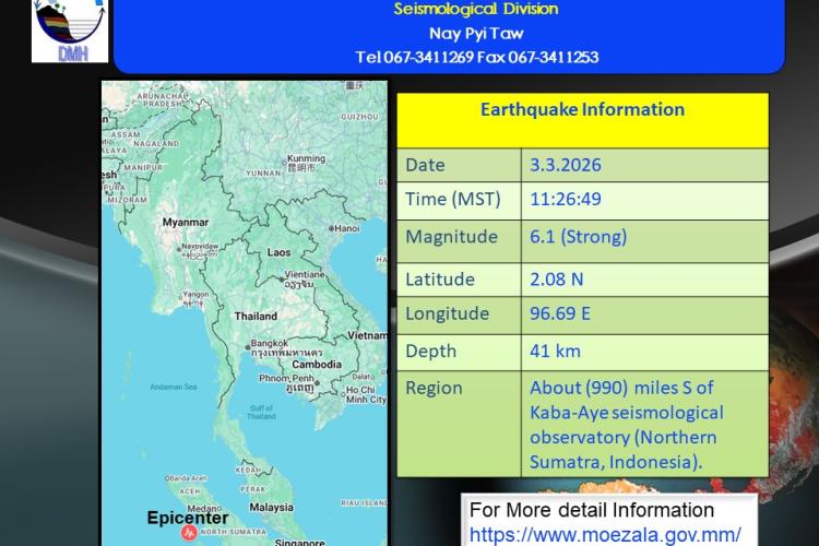 မြေငလျင်သတင်းမိုးလေဝသနှင့်ဇလဗေဒညွှန်ကြားမှုဦးစီးဌာန