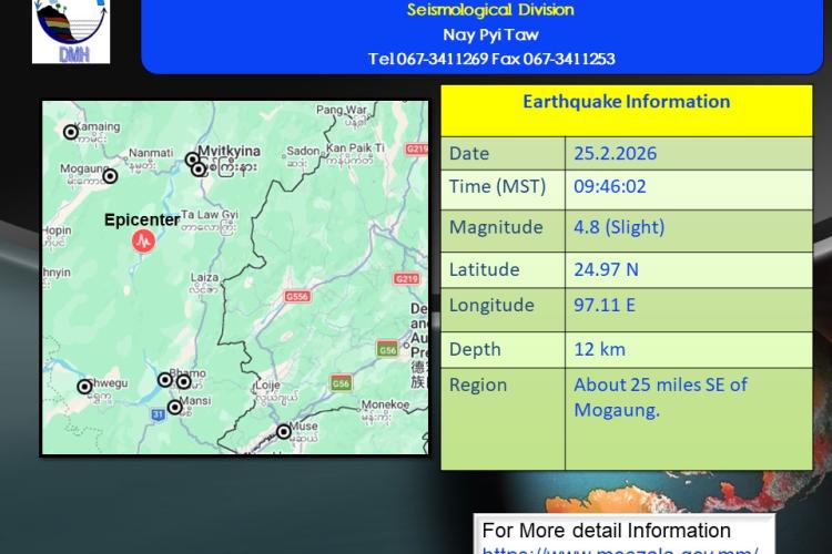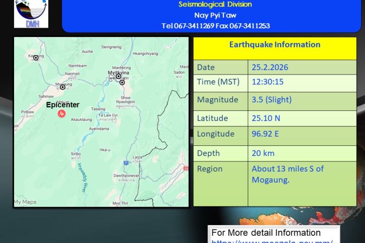 မြေငလျင်သတင်းမိုးလေဝသနှင့်ဇလဗေဒညွှန်ကြားမှုဦးစီးဌာန