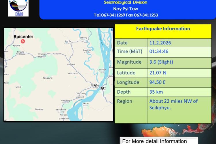 နောက်ဆက်တွဲမြေငလျင်သတင်းအမှတ်စဉ် -၂၇၈မိုးလေဝသနှင့်ဇလဗေဒညွှန်ကြားမှုဦးစီးဌာန