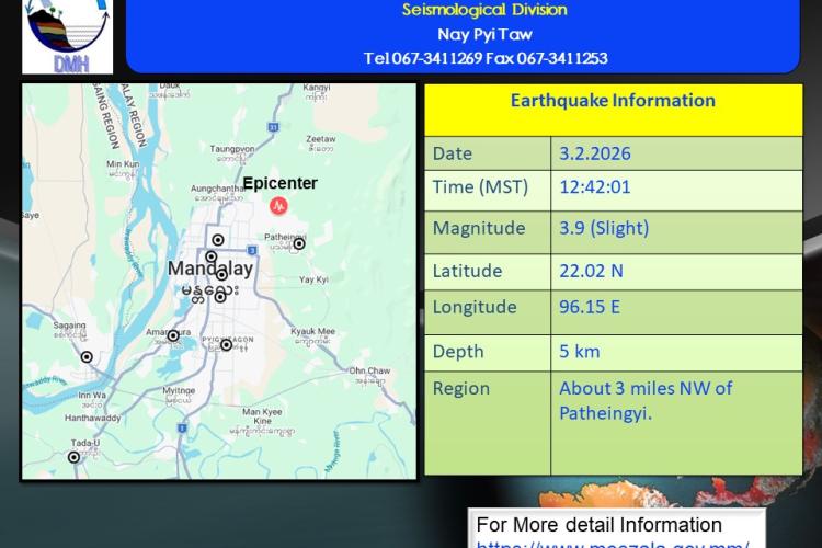 နောက်ဆက်တွဲမြေငလျင်သတင်းမိုးလေဝသနှင့်ဇလဗေဒညွှန်ကြားမှုဦးစီးဌာန