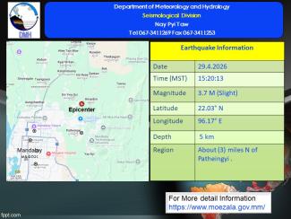 After Shock Earthquake News၂၀၂၆ ခုနှစ် ၊ ဧပြီလ ၊ ( ၂၉ ) ရက်