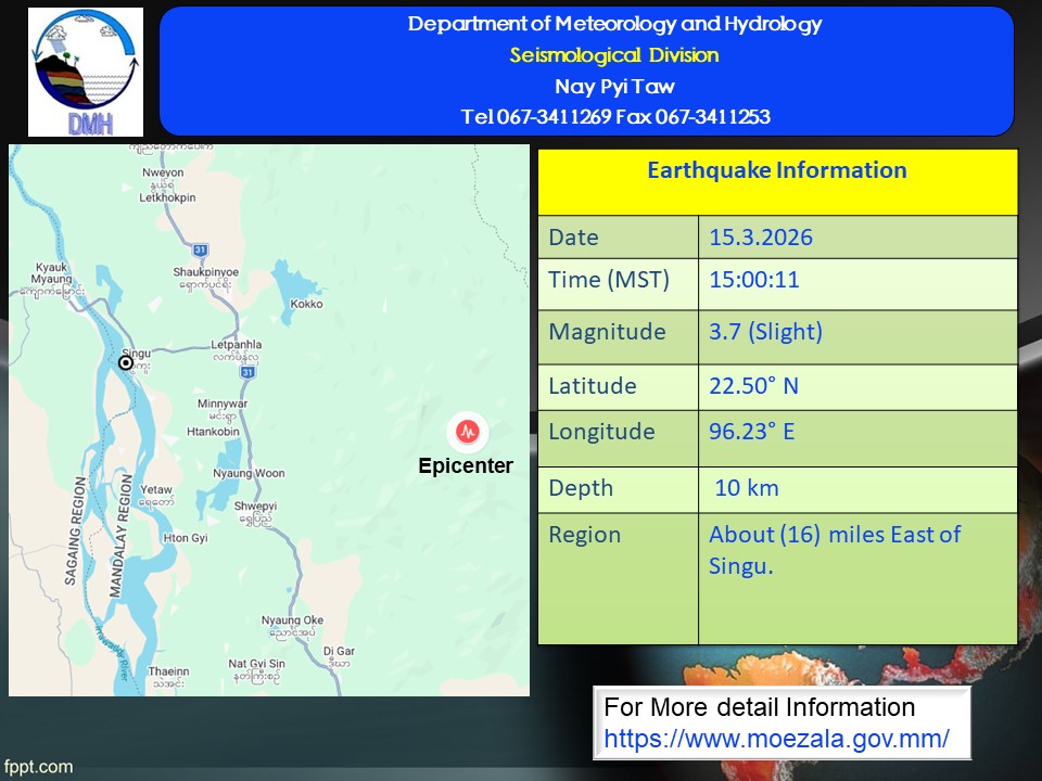 လှုပ်ခတ်သည့်အချိန် - ၁၅း၀၀း၁၁