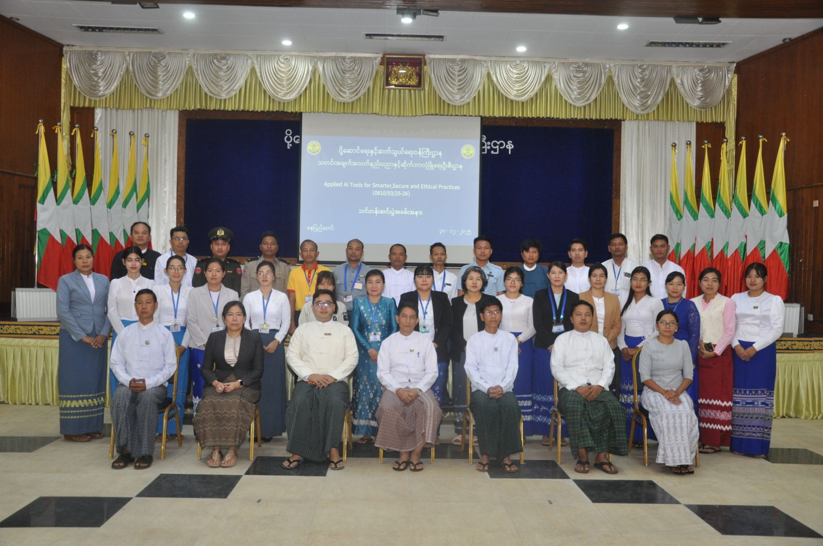 ပို့ဆောင်ရေးနှင့်ဆက်သွယ်ရေးဝန်ကြီးဌာန၊ သတင်းအချက်အလက်နည်းပညာနှင့် ဆိုက်ဘာ လုံခြုံရေးဦးစီးဌာန၊ သတင်းအချက်အလက်နည်းပညာနှင့်ဆိုက်ဘာလုံခြုံရေး သင်တန်းကျောင်း ၏ ၂၀၂၅-၂၀၂၆  ဘဏ္ဍာရေးနှစ်အတွင်း (တတိယအကြိမ်) Applied AI Tools for Smarter, Secure and Ethical Practices သင်တန်း၏ သင်တန်းဆင်းပွဲ အခမ်းအနားကို ၂၀၂၅ ခုနှစ်၊ ဒီဇင်ဘာလ ၂၆ ရက်နေ့ နေ့လည်ပိုင်းတွင် စုပေါင်းခန်းမတွင် ကျင်းပပြုလုပ်ခဲ့ ပါသည်။