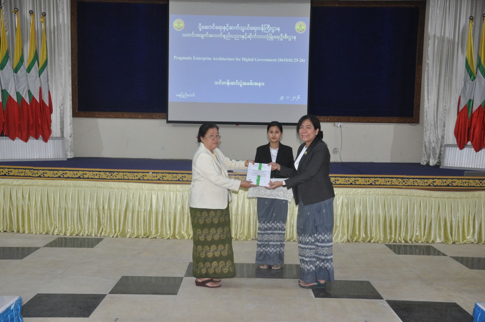 ပို့ဆောင်ရေးနှင့်ဆက်သွယ်ရေးဝန်ကြီးဌာန၊ သတင်းအချက်အလက်နည်းပညာနှင့် ဆိုက်ဘာလုံခြုံရေးဦးစီးဌာန၊ သတင်းအချက်အလက်နည်းပညာနှင့် ဆိုက်ဘာလုံခြုံရေးသင်တန်းကျောင်း၏ ၂၀၂၅-၂၀၂၆ လေ့ကျင့်သင်ကြားရေးနှစ်အတွင်း Pragmatic Enterprise Architecture for Digital Government သင်တန်း၏ သင်တန်းဆင်းပွဲ အခမ်းအနားကို ၂၀၂၆ ခုနှစ်၊ ဇန်နဝါရီလ ၂၉ ရက်နေ့ နေ့လည်ပိုင်းတွင် ရုံးအမှတ် ၂ ၊ စုပေါင်းခန်းမတွင် ကျင်းပပြုလုပ်ခဲ့ပါသည်။