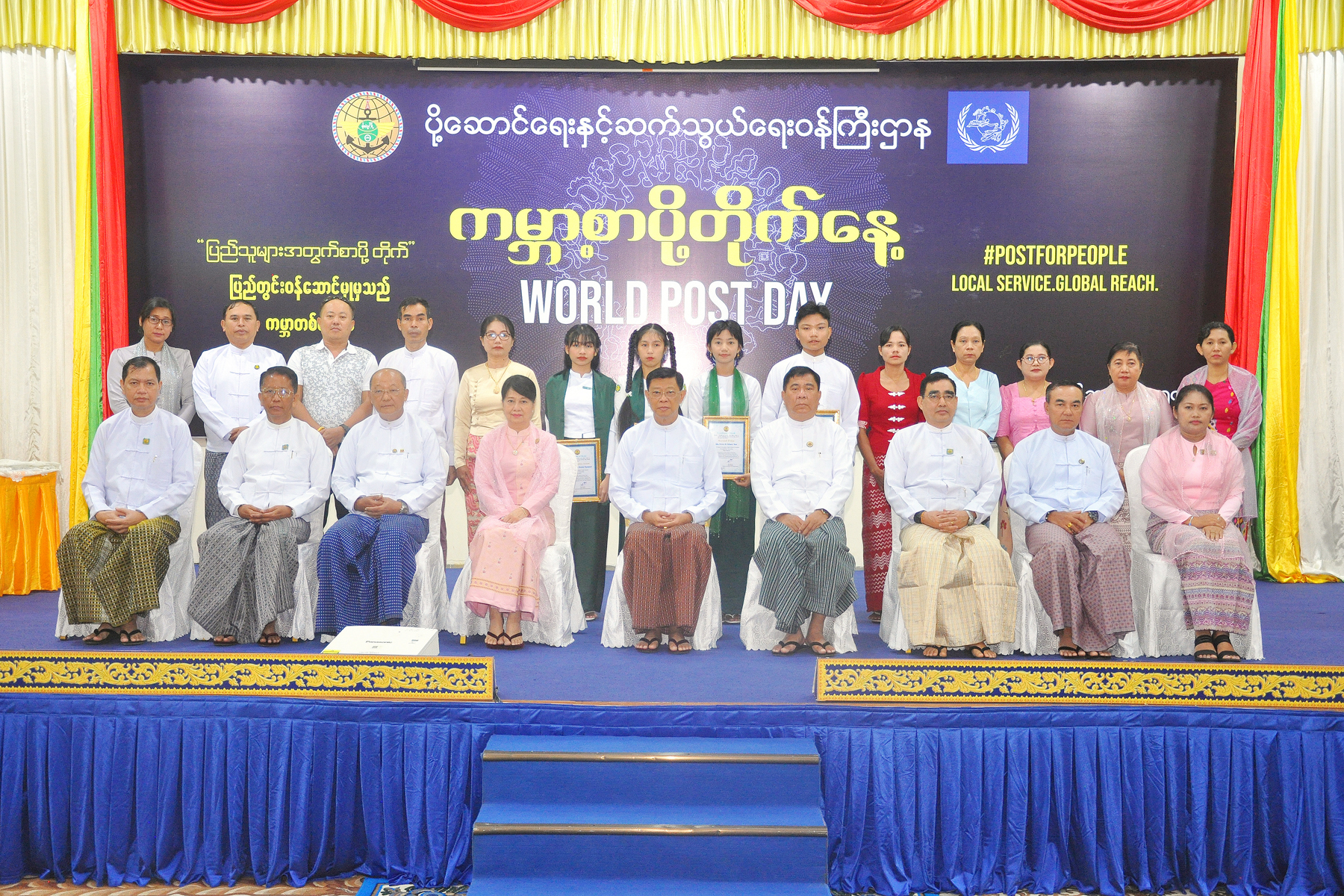 (၁၅၁) နှစ်မြောက် ကမ္ဘာ့စာပို့တိုက်နေ့အထိမ်းအမှတ်အခမ်းအနားကို ယနေ့ နံနက် ၉ နာရီတွင် နေပြည်တော်ရှိ ပို့ဆောင်ရေးနှင့်ဆက်သွယ်ရေးဝန်ကြီးဌာန၌ ကျင်းပခဲ့ပါသည်။