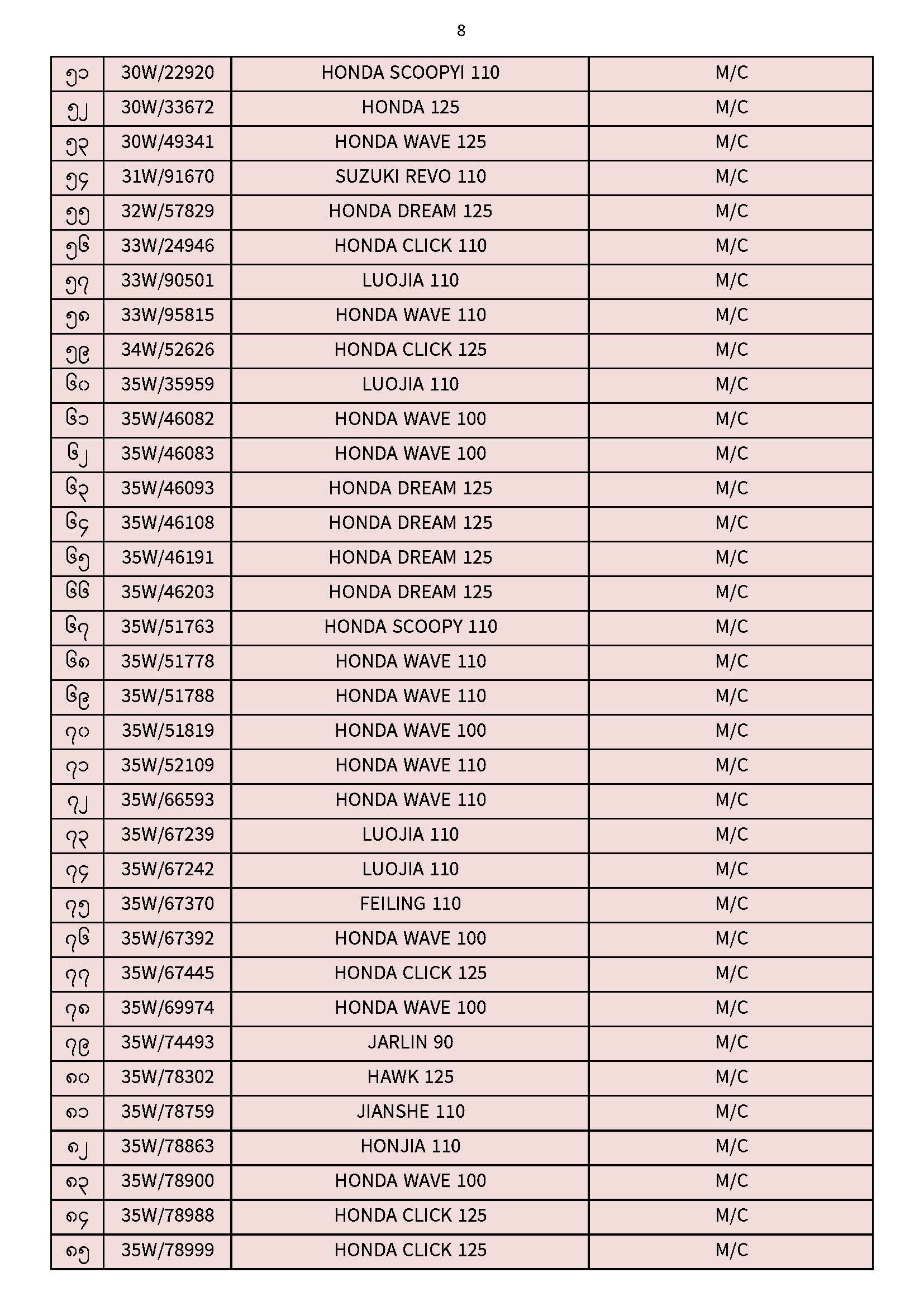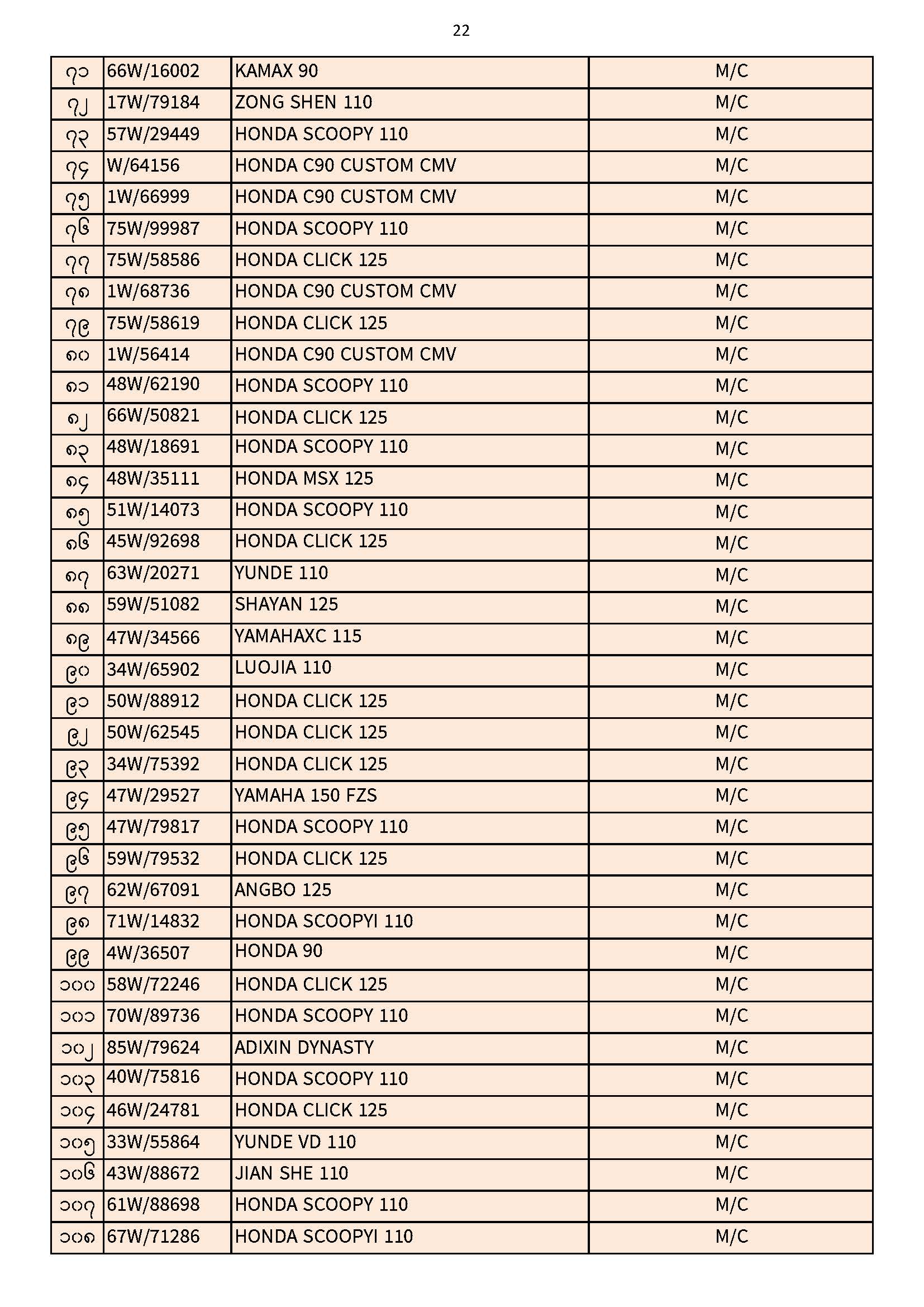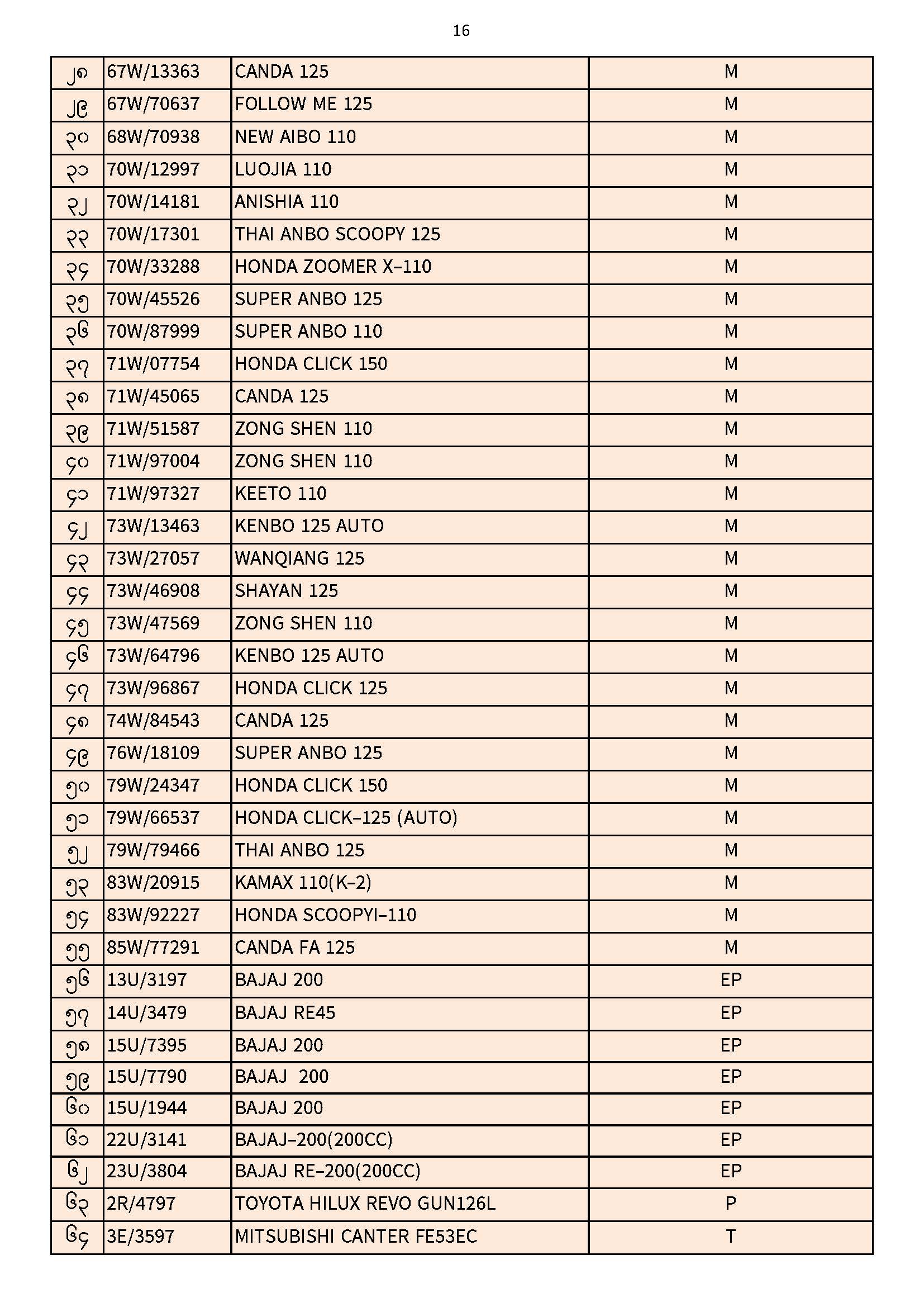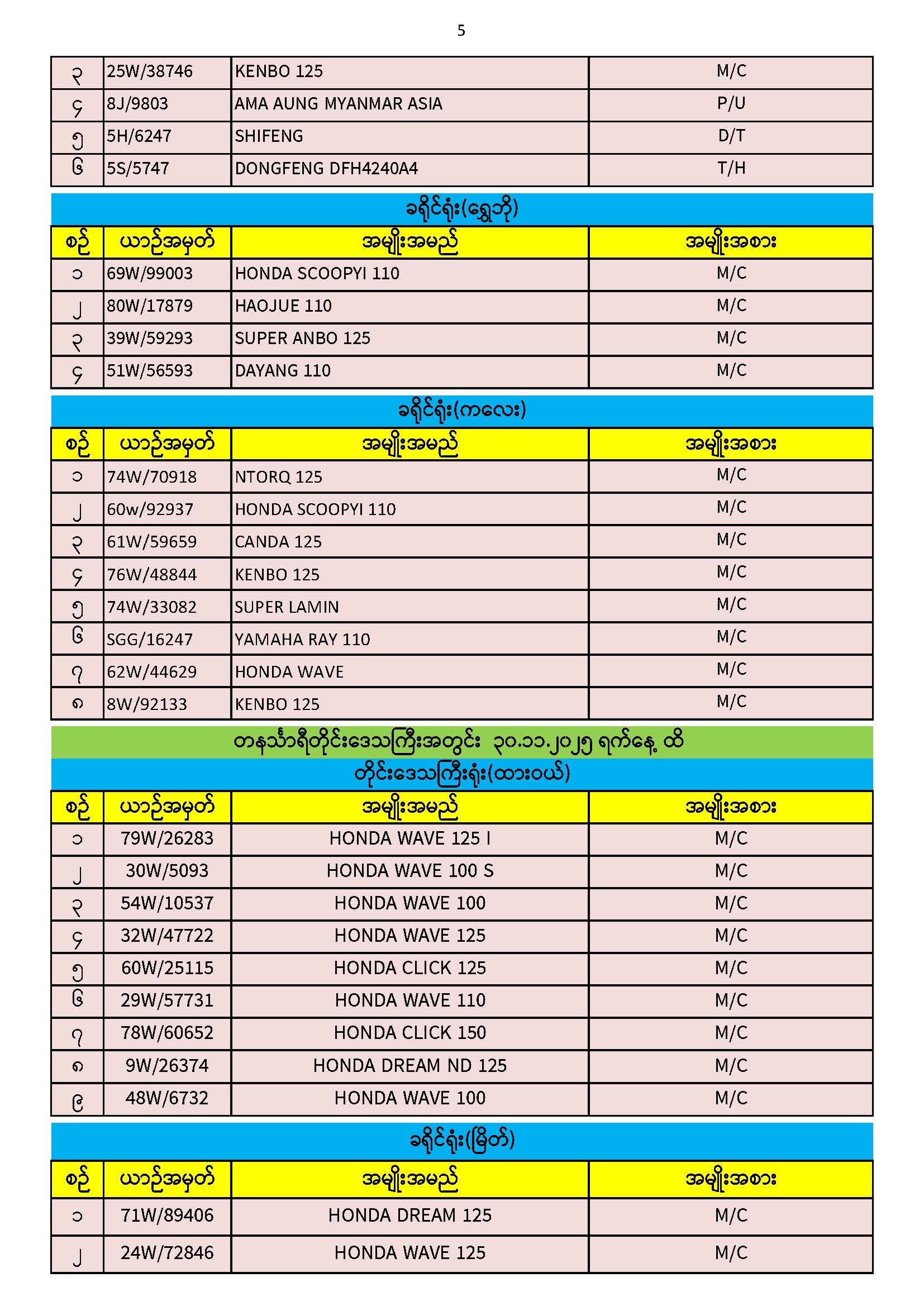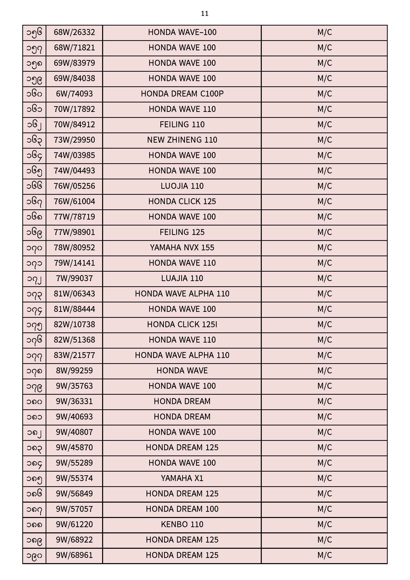 ၃၀.၁၁.၂၀၂၅ ရက်နေ့ထိ ယာဉ်မှတ်ပုံတင်စာအုပ်(ကမ-၃) ပျောက်ဆုံးမိတ္တူလာရောက် လျှောက်ထားသည့်စာရင်း Published: 04 Dec, 2025 Place: ကုန်းလမ်းပို့ဆောင်ရေးညွှန်ကြားမှုဦးစီးဌာန