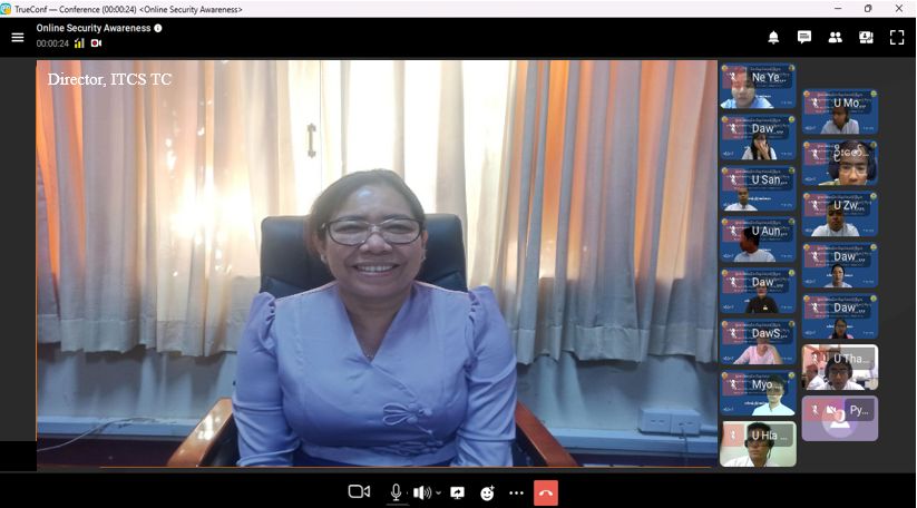 ပို့ဆောင်ရေးနှင့်ဆက်သွယ်ရေးဝန်ကြီးဌာန၊ သတင်းအချက်အလက်နည်းပညာနှင့်ဆိုက်ဘာလုံခြုံရေးဦးစီးဌာန၊ သင်တန်းကျောင်း၏ ၂၀၂၅-၂၆ ဘဏ္ဍာရေးနှစ်အတွင်း၊ ဒုတိယအကြိမ် Online Security Awareness (Online) သင်တန်းနှင့် Microsoft PowerPoint 2019 (Online) သင်တန်းများ၏ သင်တန်းဖွင့်ပွဲကို စက်တင်ဘာလ ၈ ရက်နေ့ နံနက်ပိုင်းတွင် ရုံးအမှတ် ၂ ၊ စာသင်ခန်းမ ၁ တွင် ကျင်းပပြုလုပ်ရာ သတင်းအချက်အလက်နည်းပညာနှင့် ဆိုက်ဘာလုံခြုံရေးဦးစီးဌာန၊ သတင်းအချက်အလက်နည်းပညာနှင့် ဆိုက်ဘာလုံခြုံရေးသင်တန်းကျောင်း၊ ကျောင်းအုပ်ကြီး ဒေါ်နှင်းခိုင်အေးနှင့်တကွ သင်တန်းဆရာ/ဆရာမများ၊ သင်တန်းအထောက်အကူပြု တာဝန်ခံများ၊ ပြည်ထောင်စုအဆင့် အဖွဲ့အစည်းများနှင့် ပြည်ထောင်စုဝန်ကြီးဌာန များမှ သင်တန်းသား/သင်တန်းသူ စုစုပေါင်း ၇၀ ဦး တို့ တက်ရောက်ကြောင်း သိရှိရပါသည်။