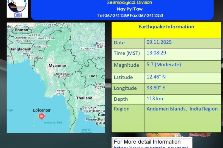 မြေငလျင်သတင်းမိုးလေဝသနှင့်ဇလဗေဒညွှန်ကြားမှုဦးစီးဌာန