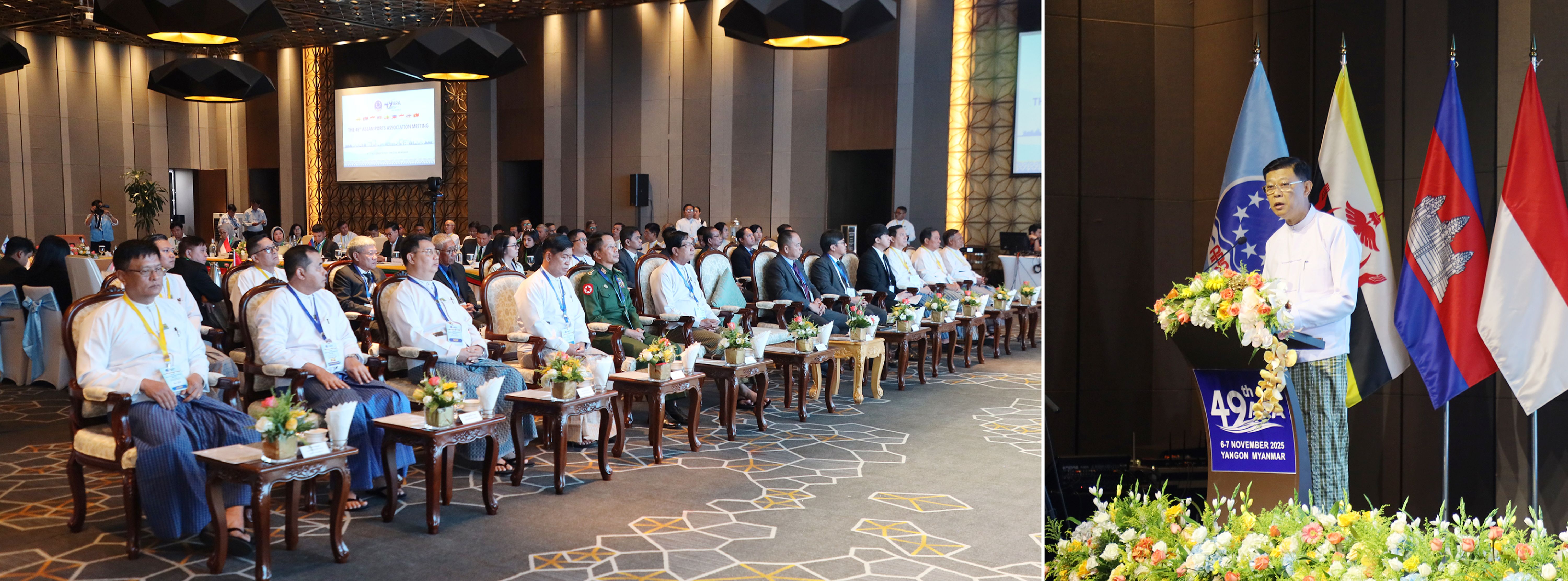 ပို့ဆောင်ရေးနှင့်ဆက်သွယ်ရေးဝန်ကြီးဌာန ပြည်ထောင်စုဝန်ကြီး ဦးမြထွန်းဦးသည် ပို့ဆောင်ရေးနှင့်ဆက်သွယ်ရေးဝန်ကြီးဌာန၊ မြန်မာ့ဆိပ်ကမ်းအာဏာပိုင်မှ အိမ်ရှင်နိုင်ငံအဖြစ် နိုဝင်ဘာလ ၆-၇ ရက်များတွင် ရန်ကုန်မြို့ Wyndam Grand Yangon Hotel ၌ လက်ခံကျင်းပသည့် (၄၉)ကြိမ်မြောက် အာဆီယံဆိပ်ကမ်းများအသင်း နှစ်ပတ်လည်အစည်းအဝေး ဖွင့်ပွဲအခမ်းအနားသို့ တက်ရောက်၍ ကြိုဆိုနှုတ်ခွန်းဆက်စကားပြောကြားသည်။