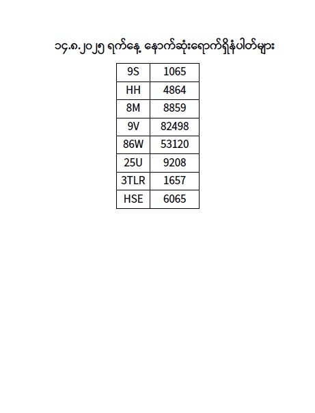 ၁၄.၈.၂၀၂၅ ရက်နေ့ထိ နောက်ဆုံးရောက်ရှိ နံပါတ်များ