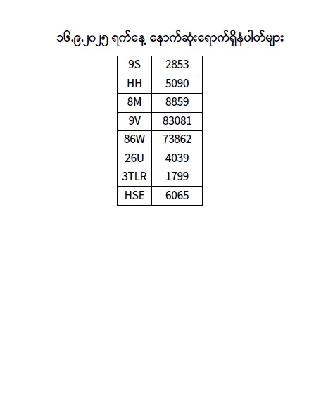 ၁၆.၉.၂၀၂၅ ရက်နေ့ထိ နောက်ဆုံးရောက်ရှိ နံပါတ်များ