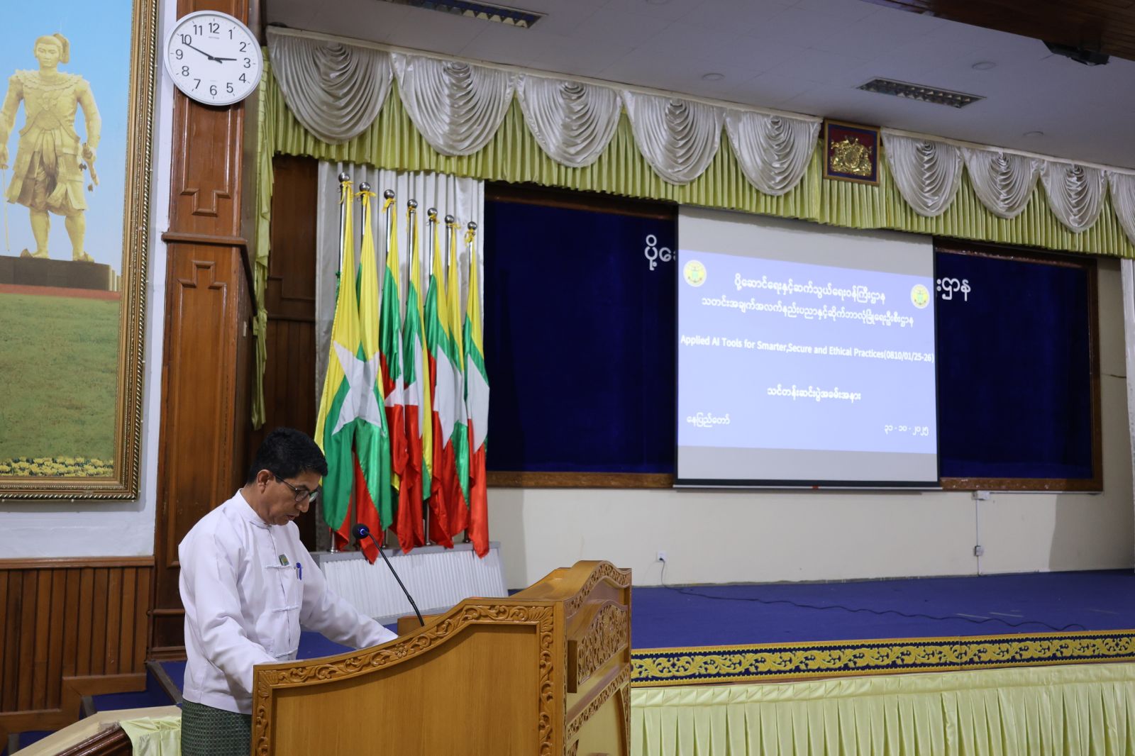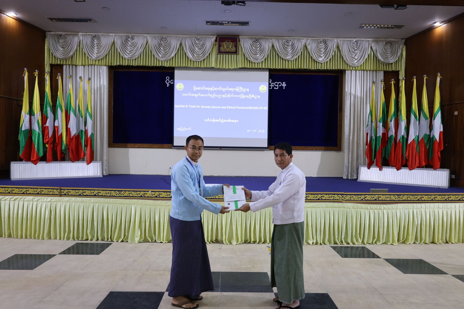 ပို့ဆောင်ရေးနှင့်ဆက်သွယ်ရေးဝန်ကြီးဌာန၊ သတင်းအချက်အလက်နည်းပညာနှင့် ဆိုက်ဘာ လုံခြုံရေးဦးစီးဌာန၊ သတင်းအချက်အလက်နည်းပညာနှင့် ဆိုက်ဘာလုံခြုံရေးသင်တန်းကျောင်း ၏ ၂၀၂၅-၂၀၂၆ လေ့ကျင့်သင်ကြားရေးနှစ်အတွင်း Applied AI Tools for Smarter, Secure and Ethical Practices သင်တန်း၏ သင်တန်းဆင်းပွဲ အခမ်းအနားကို အောက်တိုဘာလ ၃၁ ရက်နေ့ နေ့လည်ပိုင်းတွင် ရုံးအမှတ် ၂၊ စုပေါင်းခန်းမတွင် ကျင်းပ ပြုလုပ်ခဲ့ပါသည်။