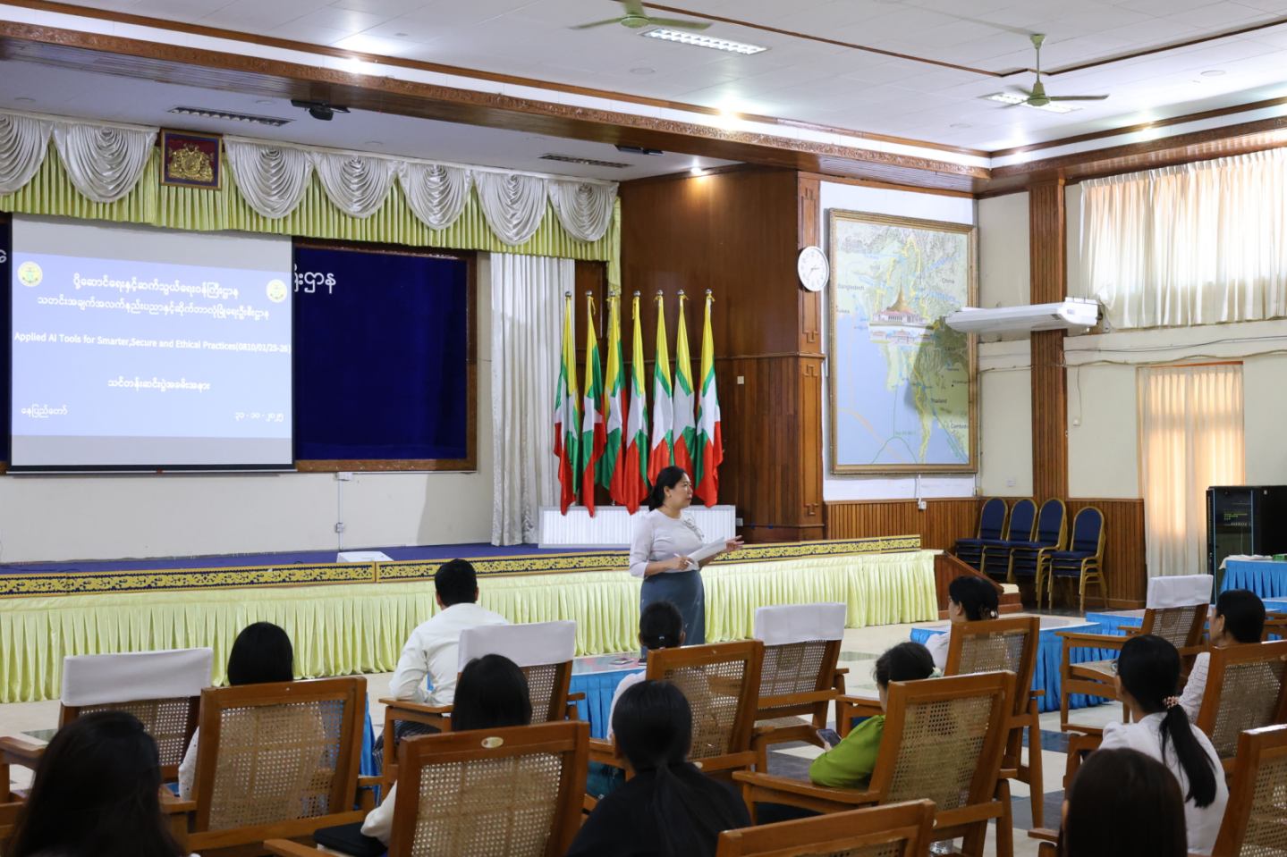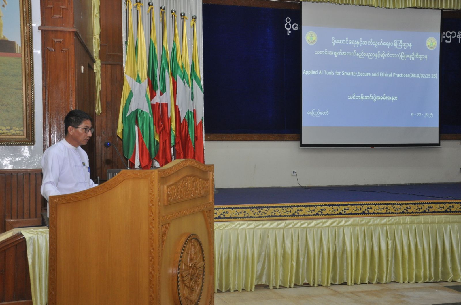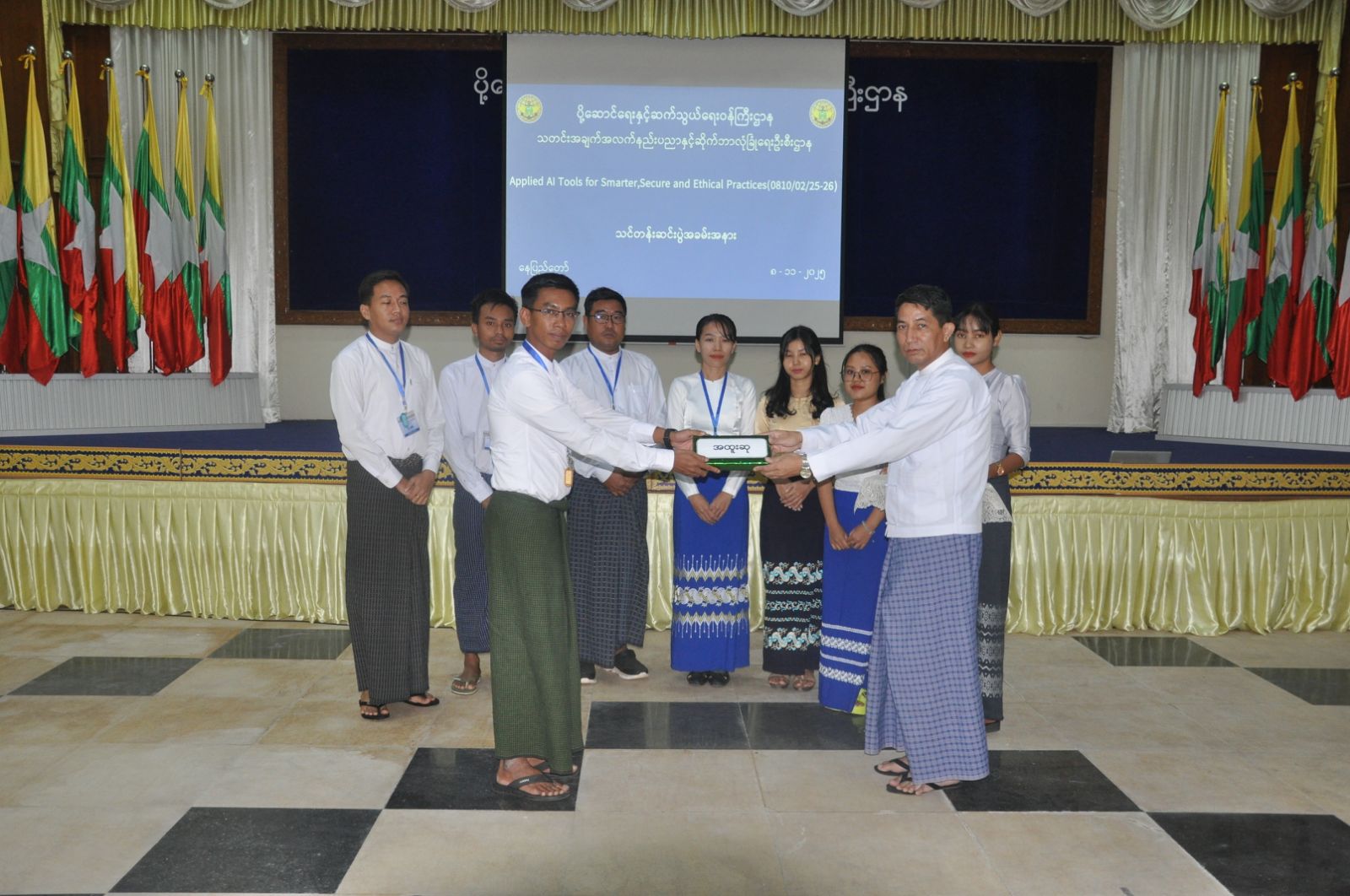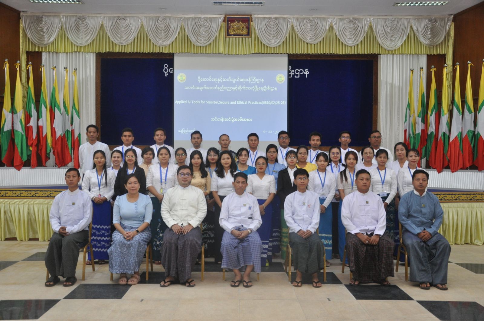 ပို့ဆောင်ရေးနှင့်ဆက်သွယ်ရေးဝန်ကြီးဌာန၊ သတင်းအချက်အလက်နည်းပညာနှင့် ဆိုက်ဘာလုံခြုံရေးဦးစီးဌာန၊ သတင်းအချက်အလက်နည်းပညာနှင့် ဆိုက်ဘာလုံခြုံရေးသင်တန်းကျောင်း၏ ၂၀၂၅-၂၀၂၆ လေ့ကျင့်သင်ကြားရေးနှစ်အတွင်း Applied AI Tools for Smarter, Secure and Ethical Practices သင်တန်း၏ သင်တန်းဆင်းပွဲ အခမ်းအနားကို နိုဝင်ဘာလ ၈ ရက်နေ့ နေ့လယ်ပိုင်းတွင် ရုံးအမှတ် ၂၊ စုပေါင်းခန်းမတွင် ကျင်းပပြုလုပ်ခဲ့ပါသည်။