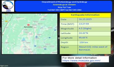 မြေငလျင်သတင်း၂၀၂၅ ခုနှစ် ၊ အောက်တိုဘာလ ၊ ( ၁၆ ) ရက်