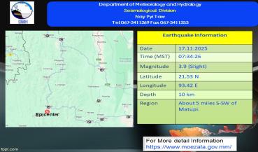 မြေငလျင်သတင်း၂၀၂၅ ခုနှစ် ၊ နိုဝင်ဘာလ ၊ ( ၁၇ ) ရက်