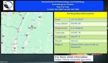 မြေငလျင်သတင်း၂၀၂၅ ခုနှစ် ၊ နိုဝင်ဘာလ ၊ ( ၁၆ ) ရက်